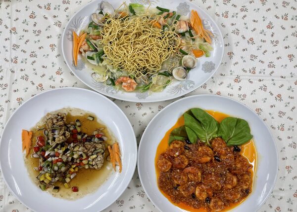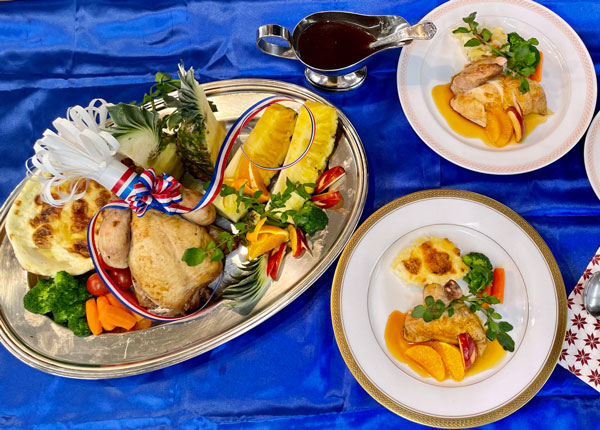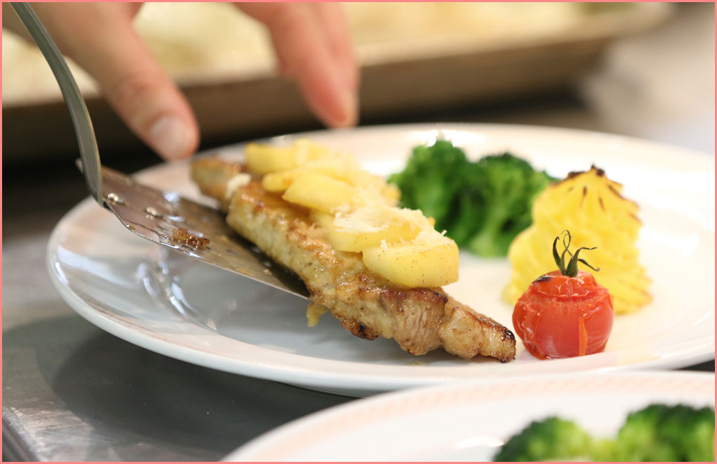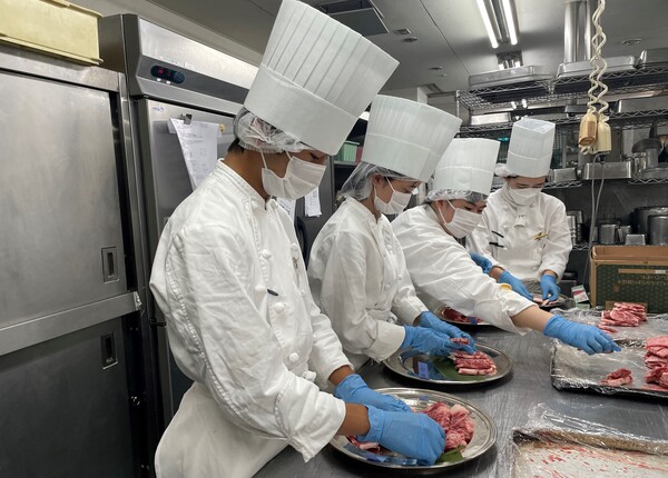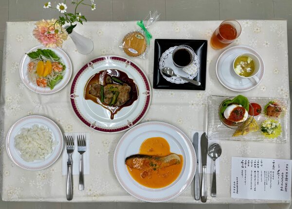 ▲作った料理は、サービスの勉強も兼ねて先生方に食べていただいています