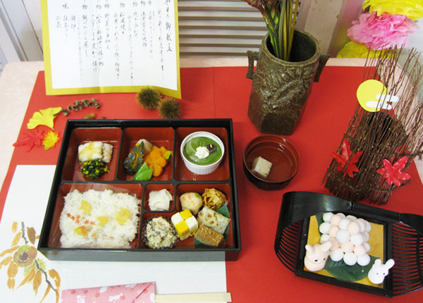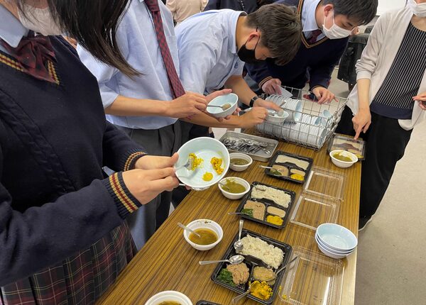 ▲学校にお招きしての会食会(生徒たちが考えたメニューです)