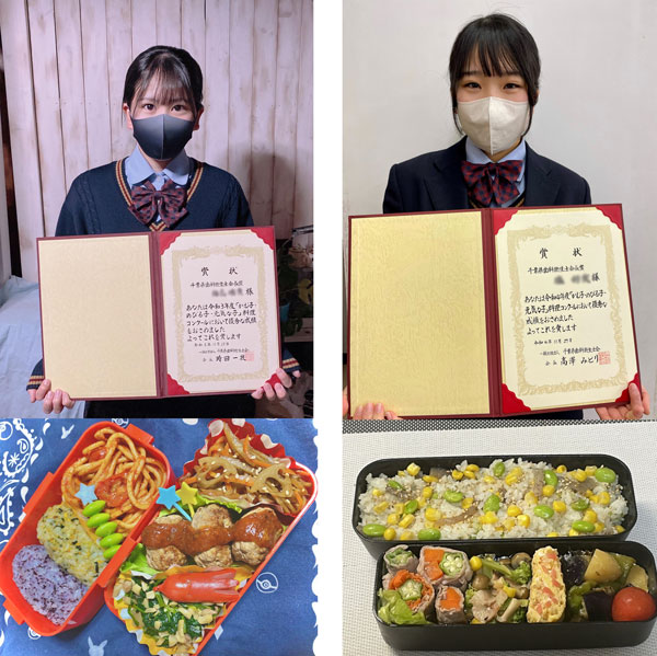2年次にかむ子・のびる子・元気な子 料理コンクールに全員が応募しています。そして、毎年食物調理科の生徒が上位受賞しています。その他、「うまいもん甲子園」など、たくさんのコンテストにも挑戦しています。第12回「ご当地!絶品うまいもん甲子園」では、本校生徒が関東甲信越エリア選抜大会に出場しました。