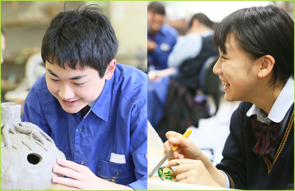 美術や工芸を通して豊かな人間性を育てるのが私たちの大きな目標です。高校卒業後の進路が美術の分野でなくとも、創造性を磨くことは人生を豊かにすると考えます。それぞれの生徒がそれぞれの個性を生かせることこそが大切です。