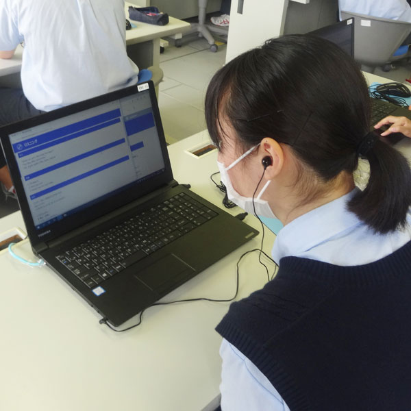 また、外国人講師による英会話の授業が3年間継続して行われることや、コンピュータを使用したリスニング対策授業を行うことにより、英語学習に必要な「読む」、「聞く」、「書く」、「話す」をバランスよく学ぶことができます。